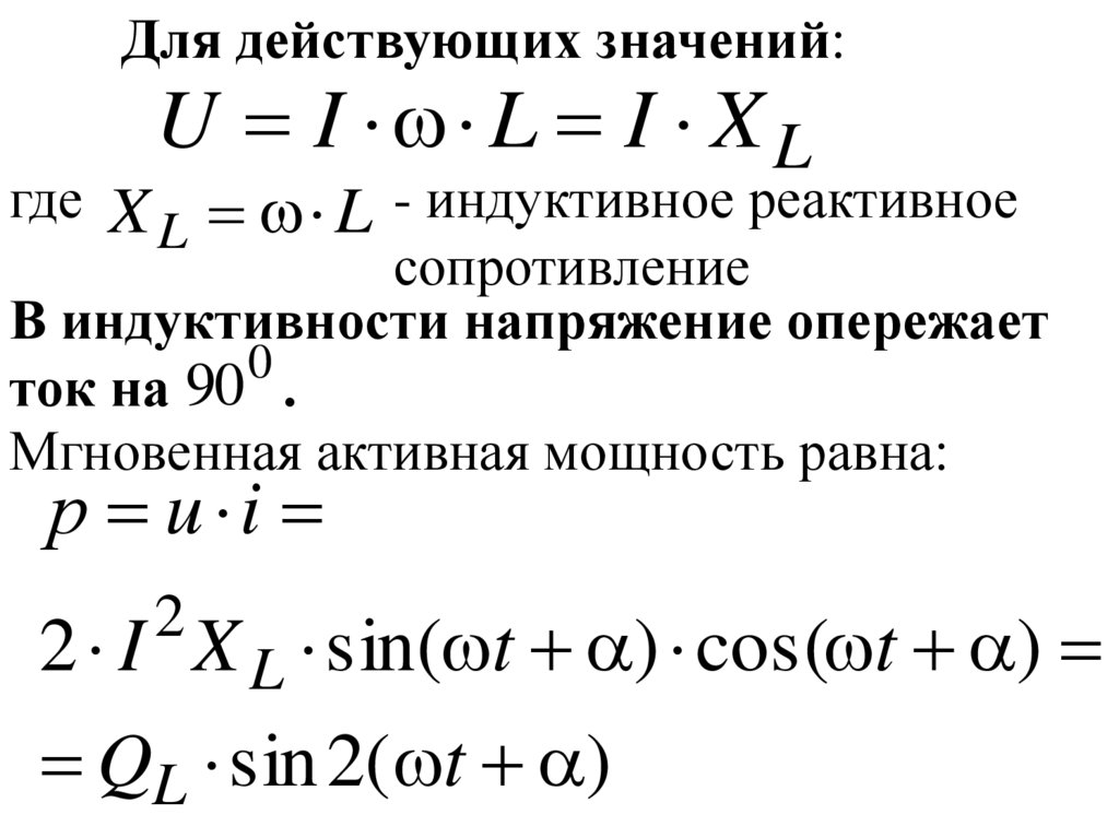 Для действующих значений:I