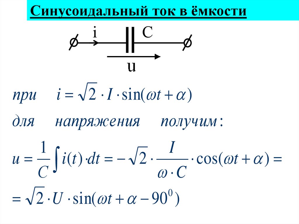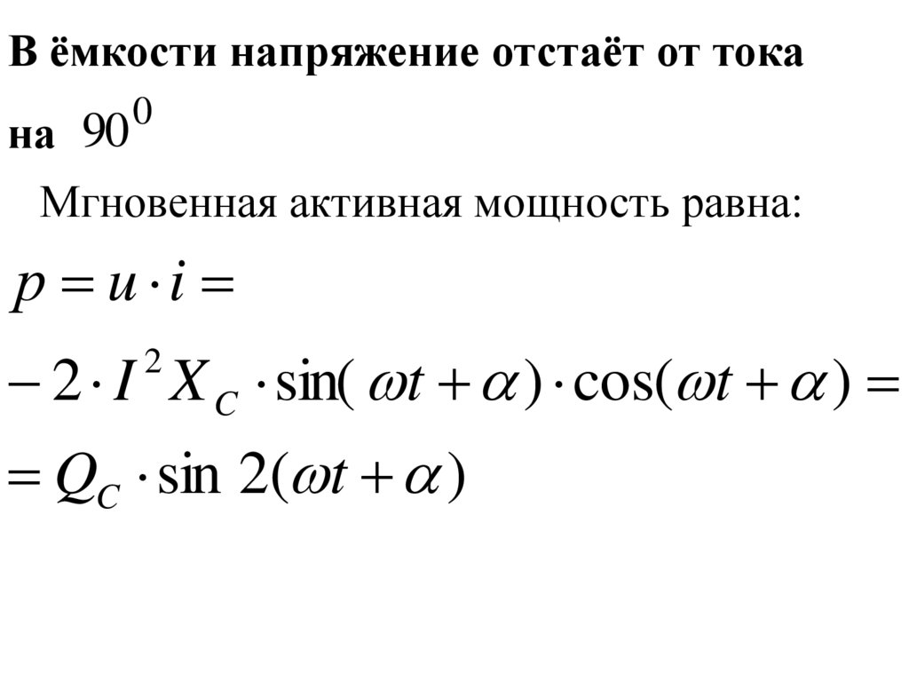 В ёмкости напряжение отстаёт от токана 90