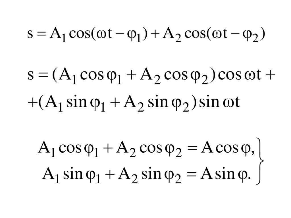 s A1 cos( t 1) A 2 cos( t 2 )s (A1 cos 1 A 2 cos 2 ) cos t