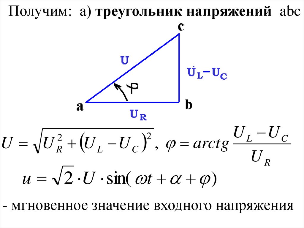 Получим: а) треугольник напряжений abcU L UC