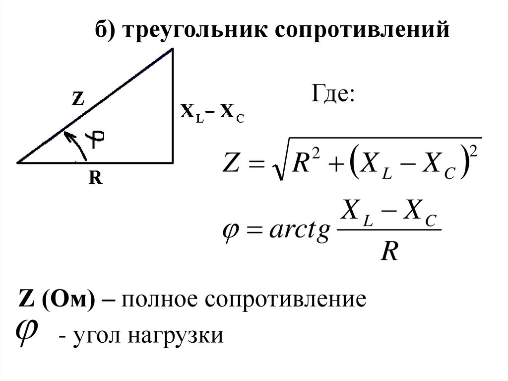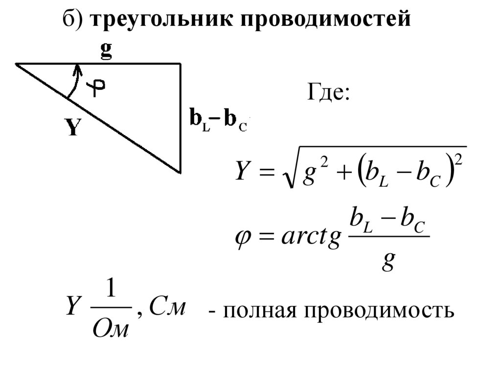 б) треугольник проводимостейГде: