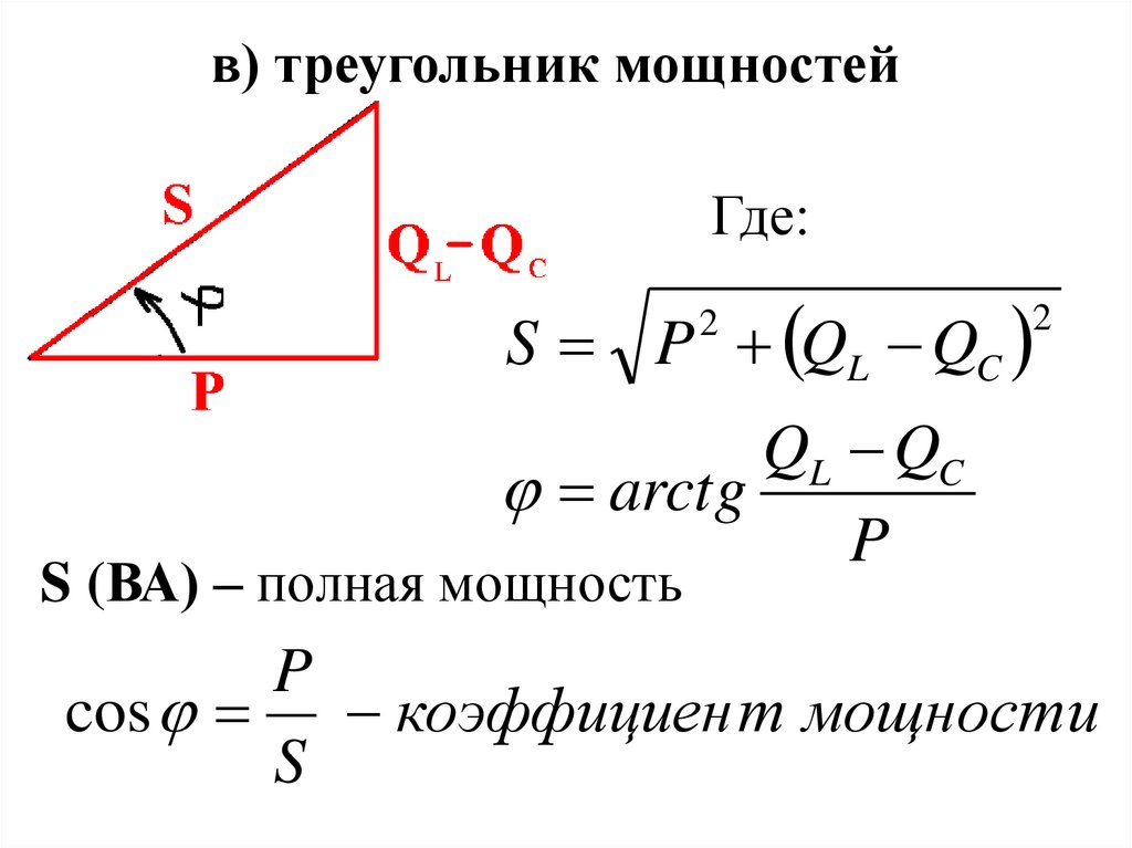 На основании треугольника мощностейсоставляется баланс мощности в эл. цепи