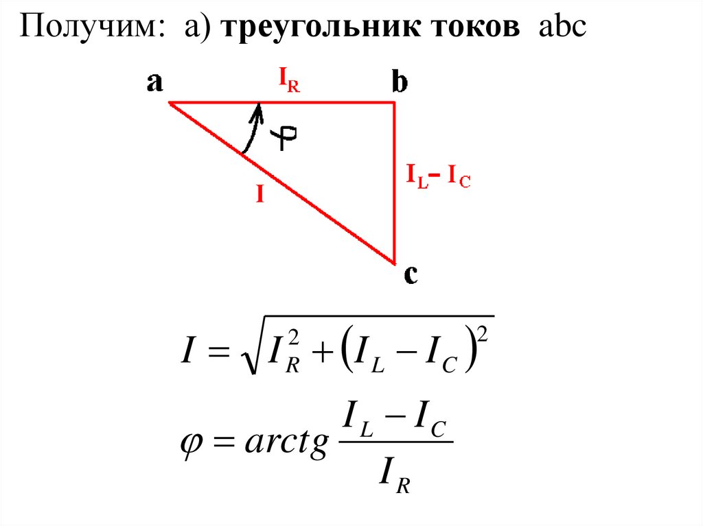 Получим: а) треугольник токов abcI I I L I C