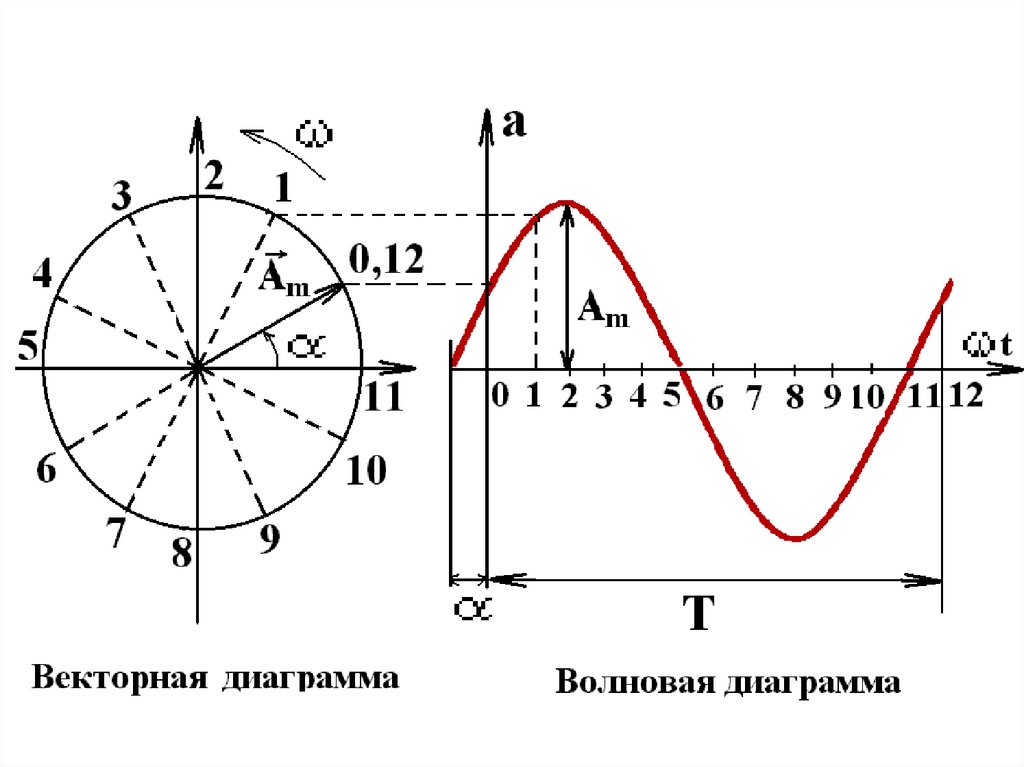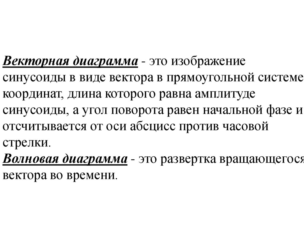 Векторная диаграмма - это изображениесинусоиды в виде вектора в прямоугольной системе