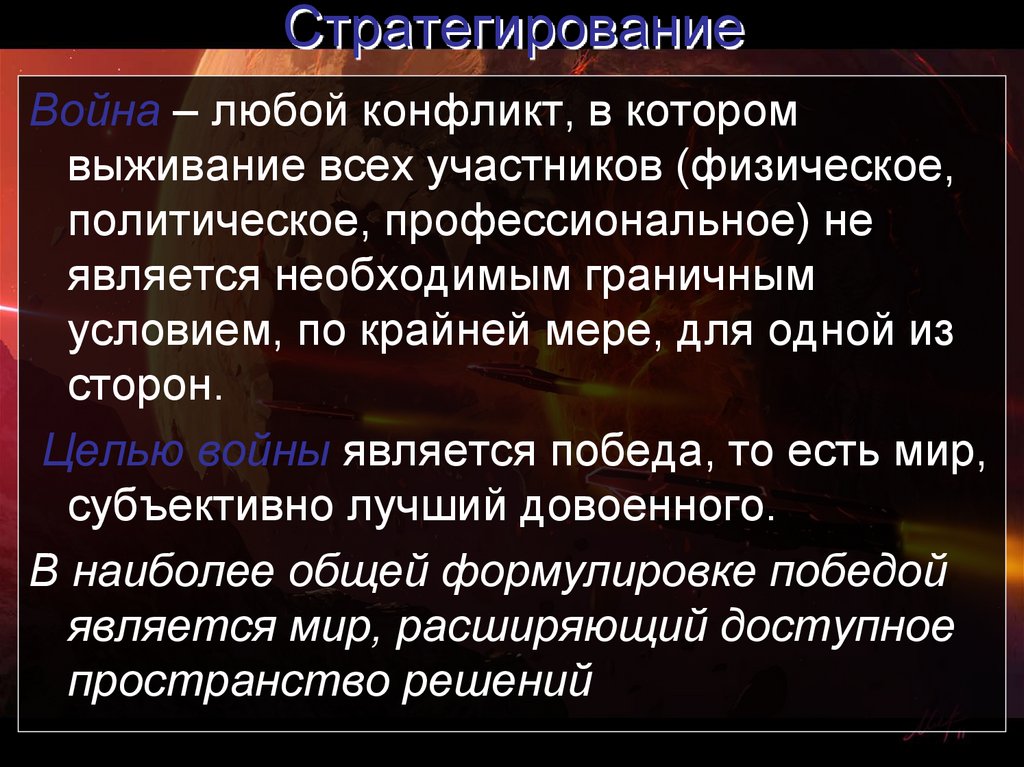 • Стратегия – искусство выиграть войну