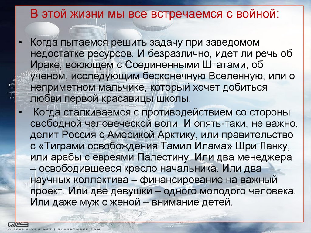 В этой жизни мы все встречаемся с войной:• Когда пытаемся решить задачу при заведомом