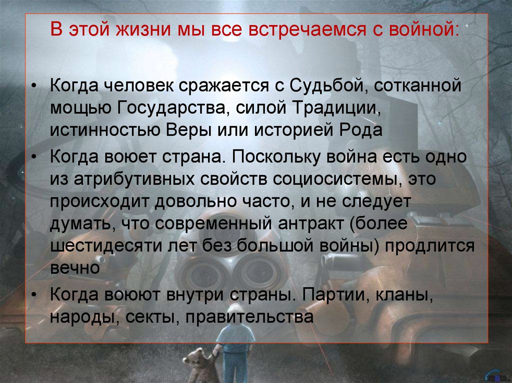 В этой жизни мы все встречаемся с войной:• Когда человек сражается с Судьбой, сотканной