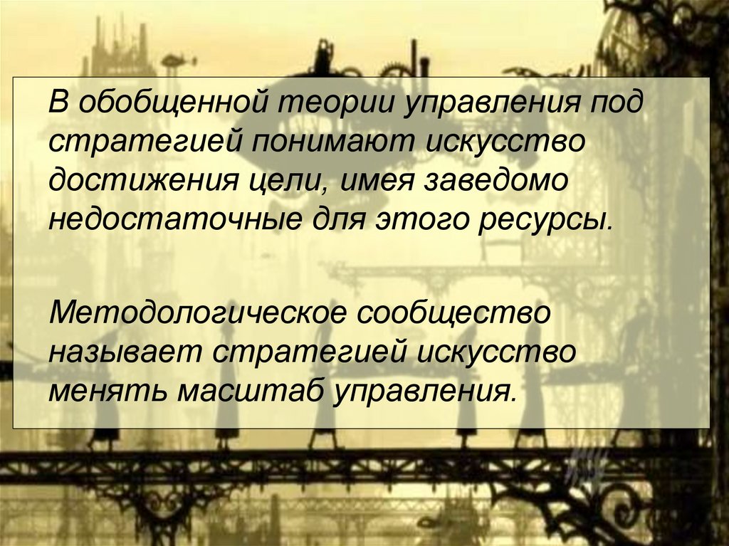 В обобщенной теории управления подстратегией понимают искусство