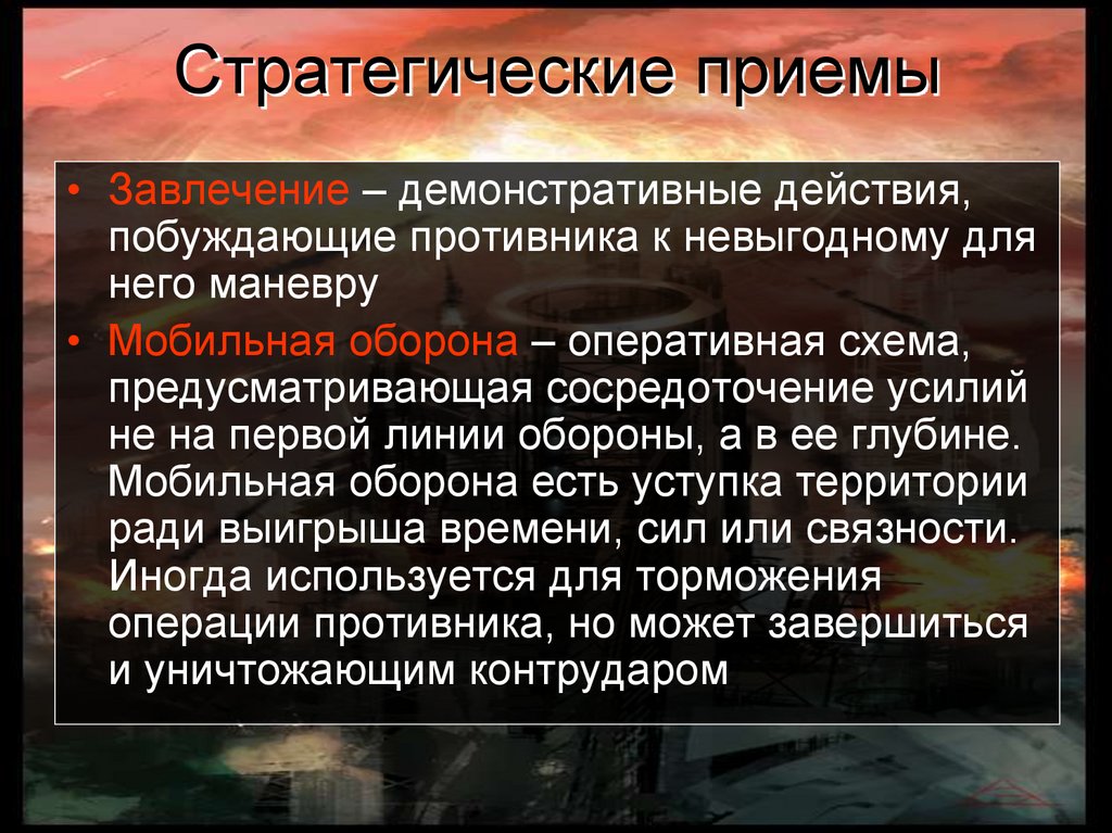 • Завлечение – демонстративные действия,побуждающие противника к невыгодному для