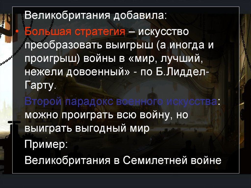 Великобритания добавила:• Большая стратегия – искусство