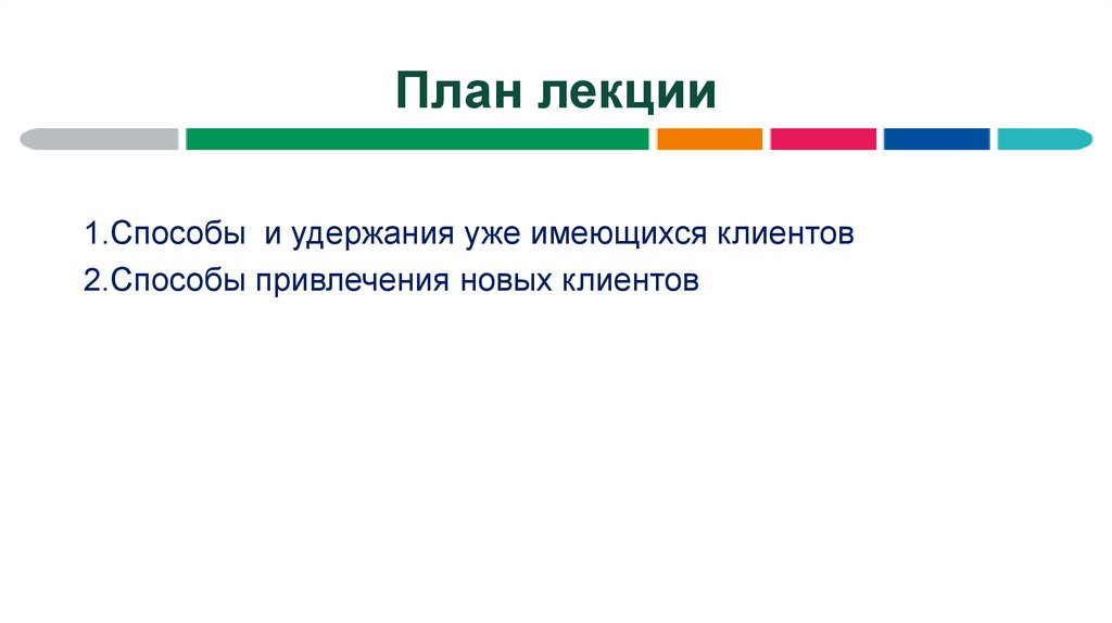 План лекции1.Способы и удержания уже имеющихся клиентов