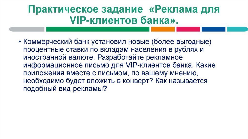 Практическое задание «Реклама дляVIP-клиентов банка».
