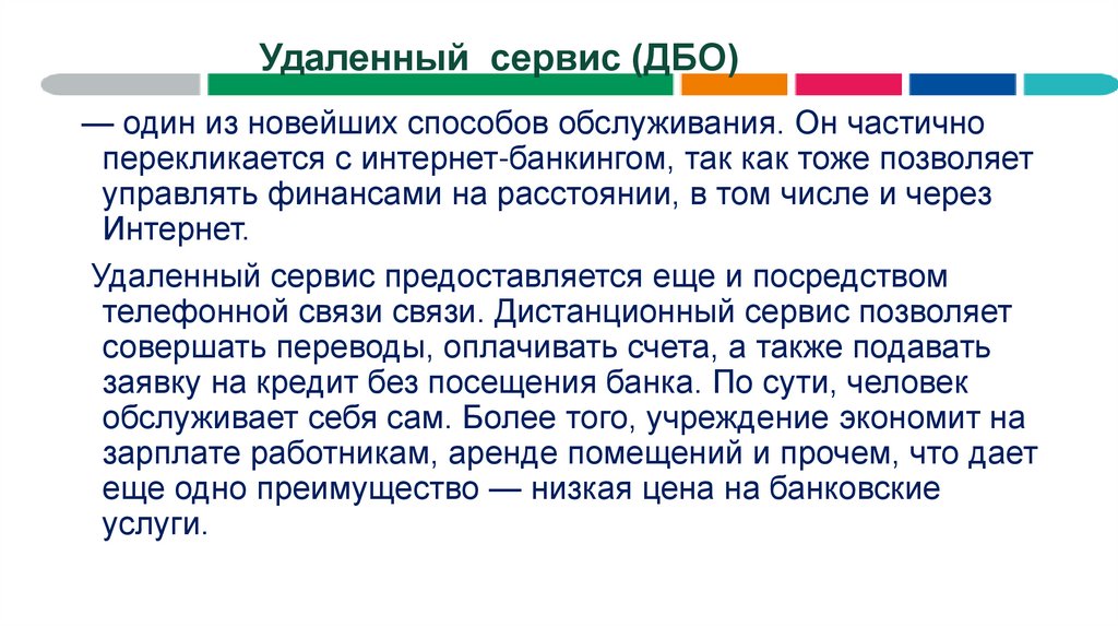 Удаленный сервис (ДБО)— один из новейших способов обслуживания. Он частично