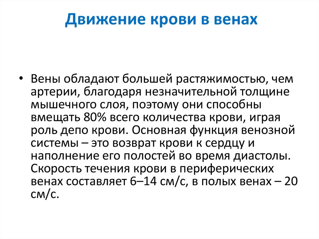 Движение крови в венах• Вены обладают большей растяжимостью, чем