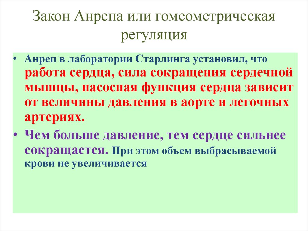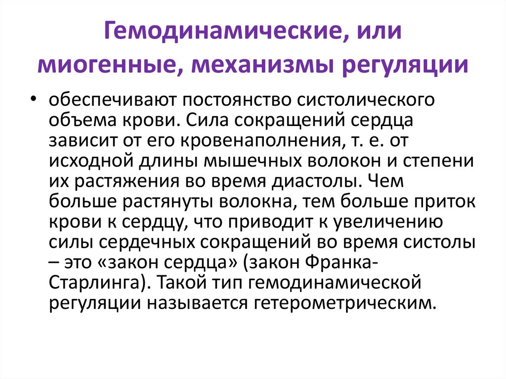 – это «закон сердца» (закон ФранкаСтарлинга). Такой тип гемодинамической
