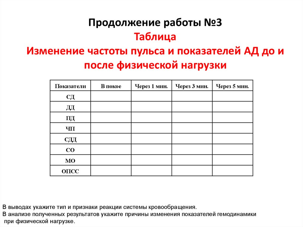 • Примечание. В выводах отразите, как изменялось АД и частота пульса