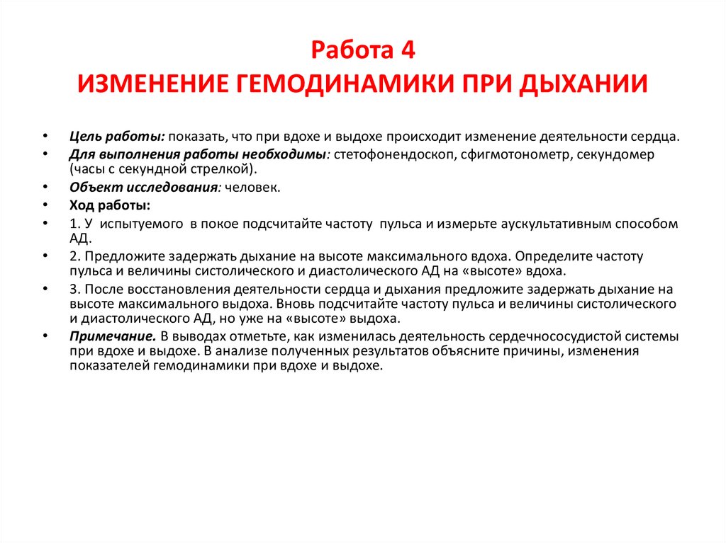 Работа 4ИЗМЕНЕНИЕ ГЕМОДИНАМИКИ ПРИ ДЫХАНИИ