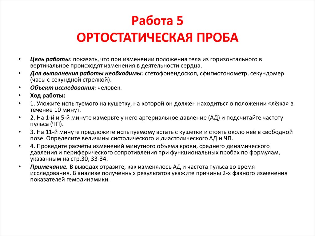 Работа 5ОРТОСТАТИЧЕСКАЯ ПРОБА