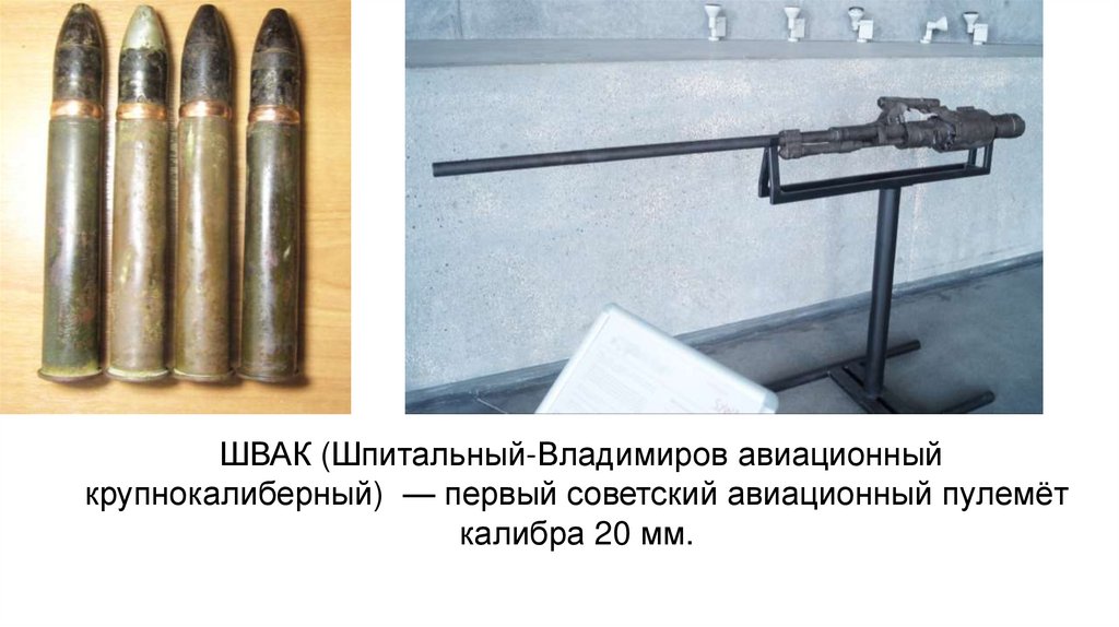 ШВАК (Шпитальный-Владимиров авиационныйкрупнокалиберный) — первый советский авиационный пулемёт