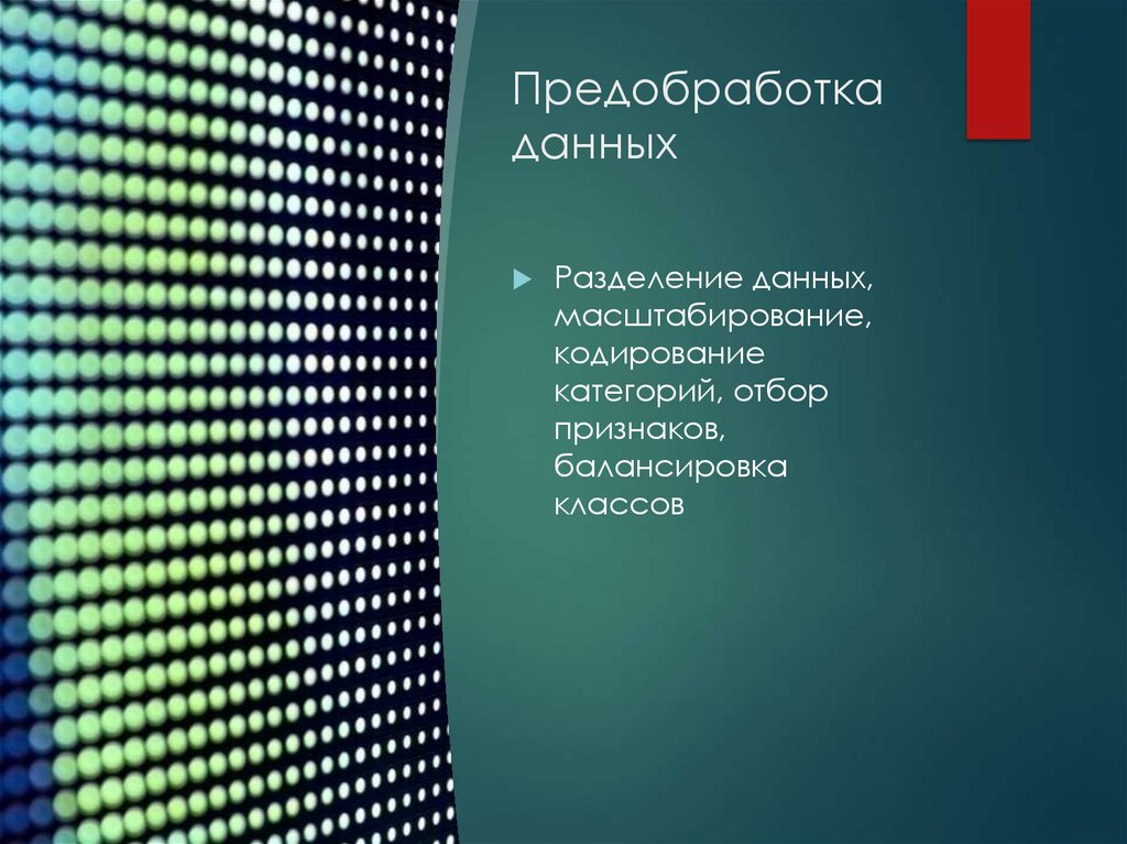 Предобработка данных. Разделение данных, масштабирование, кодирование категорий, отбор признаков, балансировка классов