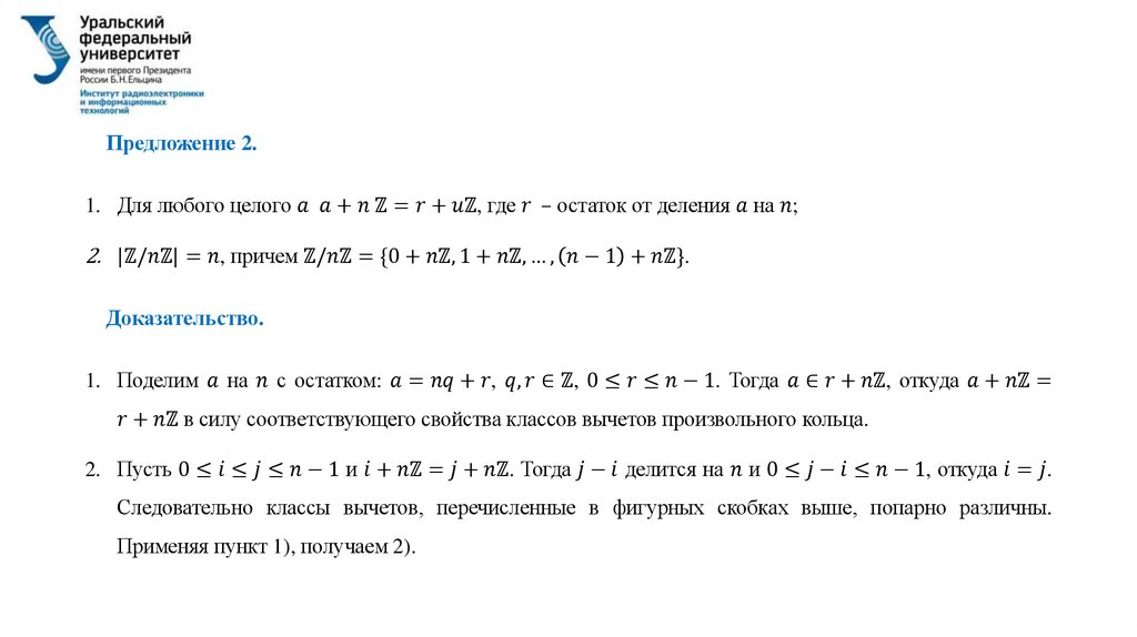 Лекционное занятие 8 Теория чисел и теория многочленов Элементарная теория чисел