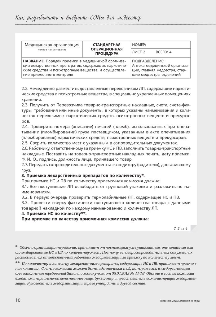 не ограничивается только приемкой и хранением. Поэтому целесообразно разработать СОПы и для всех других