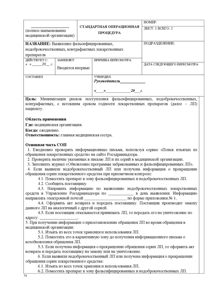 ала – готовые образцы. СОПы подготовлены при содействии территориального управления Росздравнадзорапо Иркутской области и прошли успешную апробацию