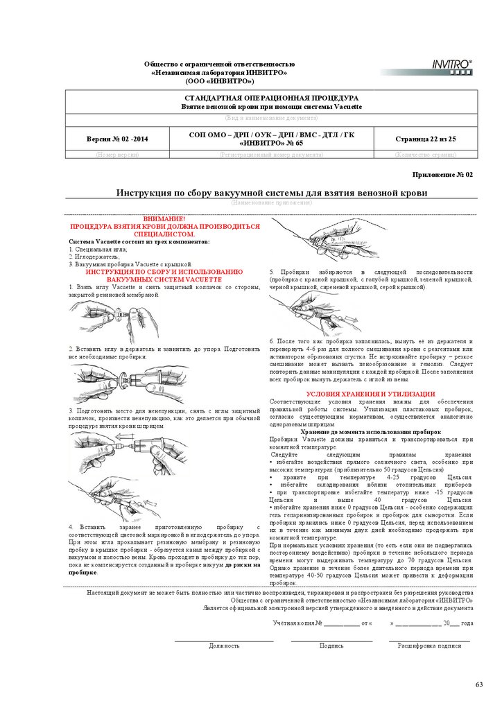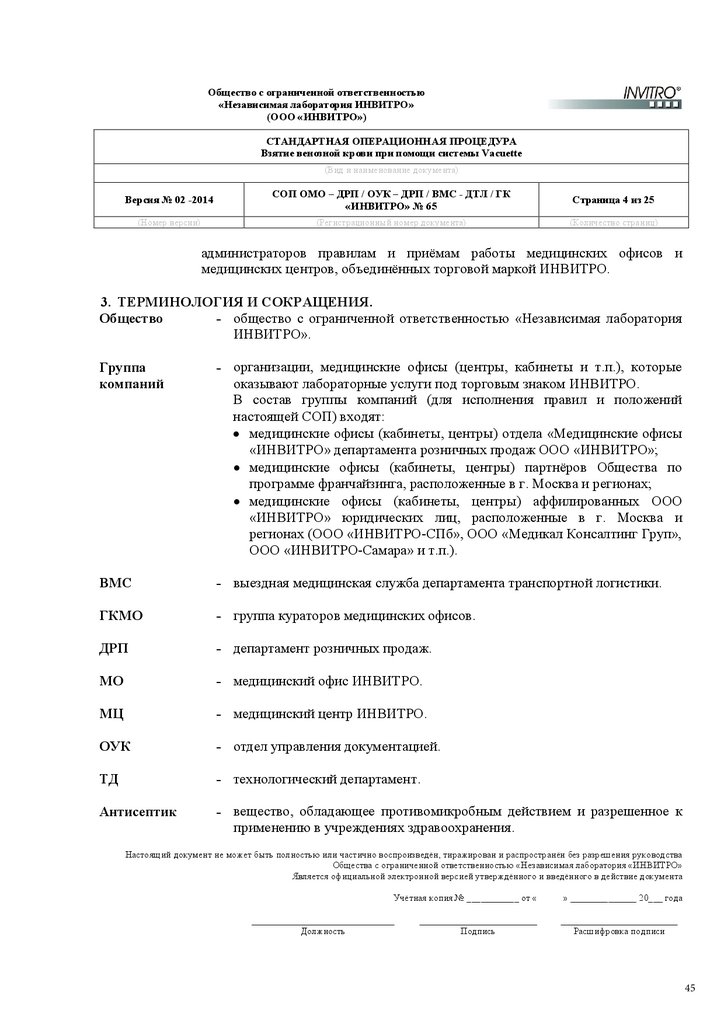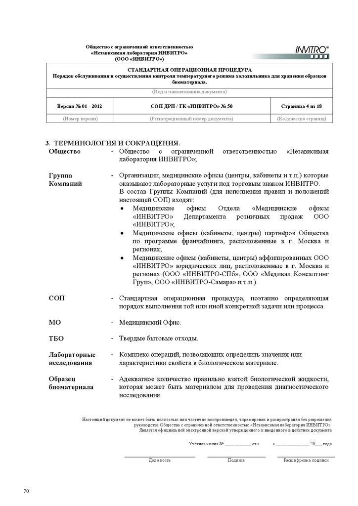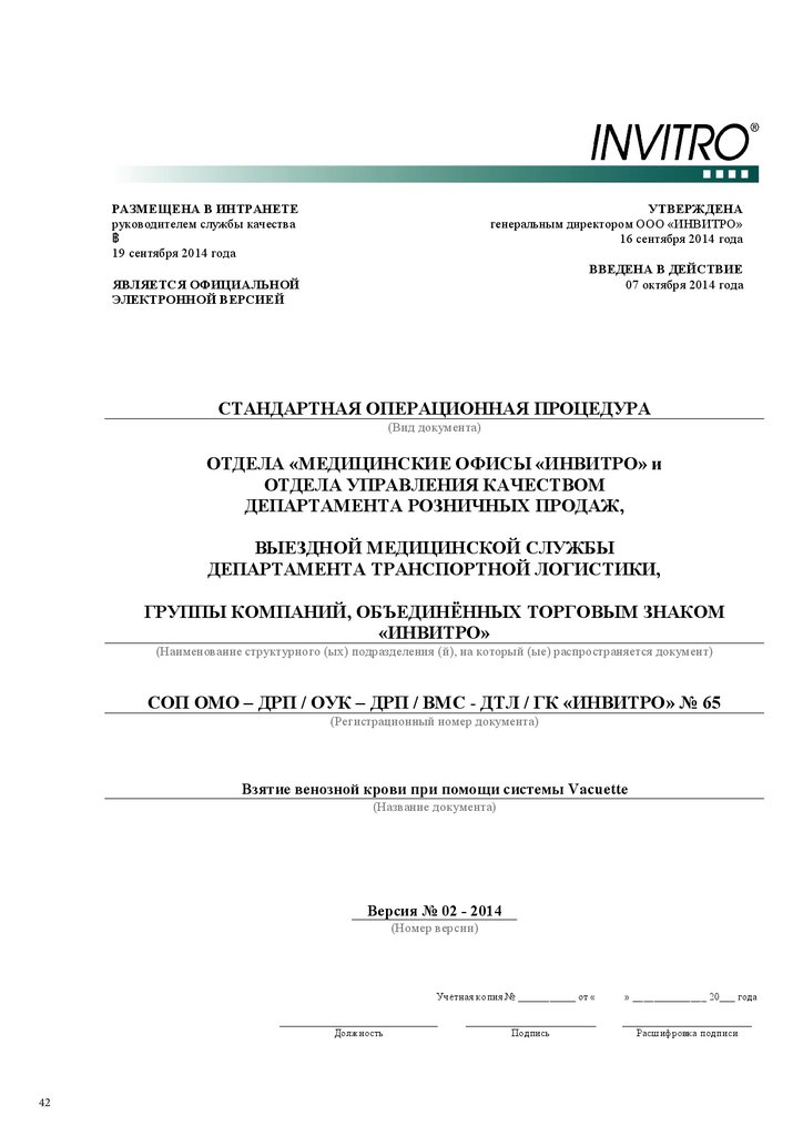 подразделений, работающих под торговым знаком «ИНВИТРО».