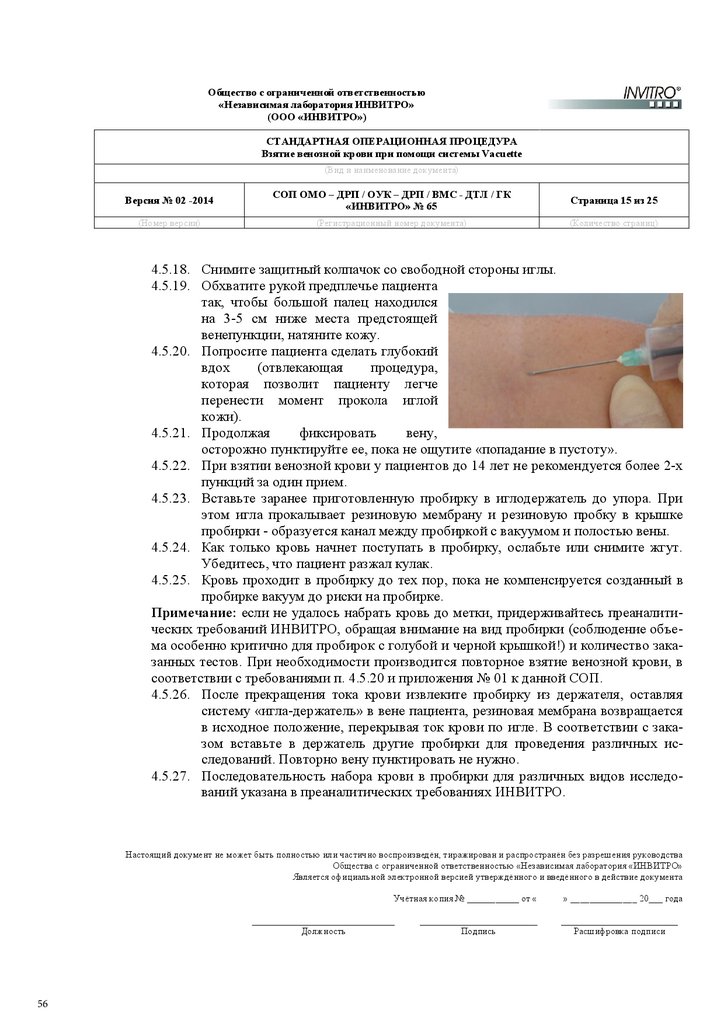 образцов биоматериала возлагается на старших медицинских сестёр (старших
