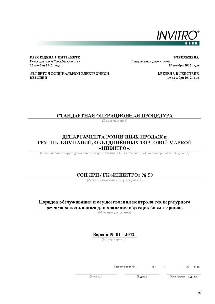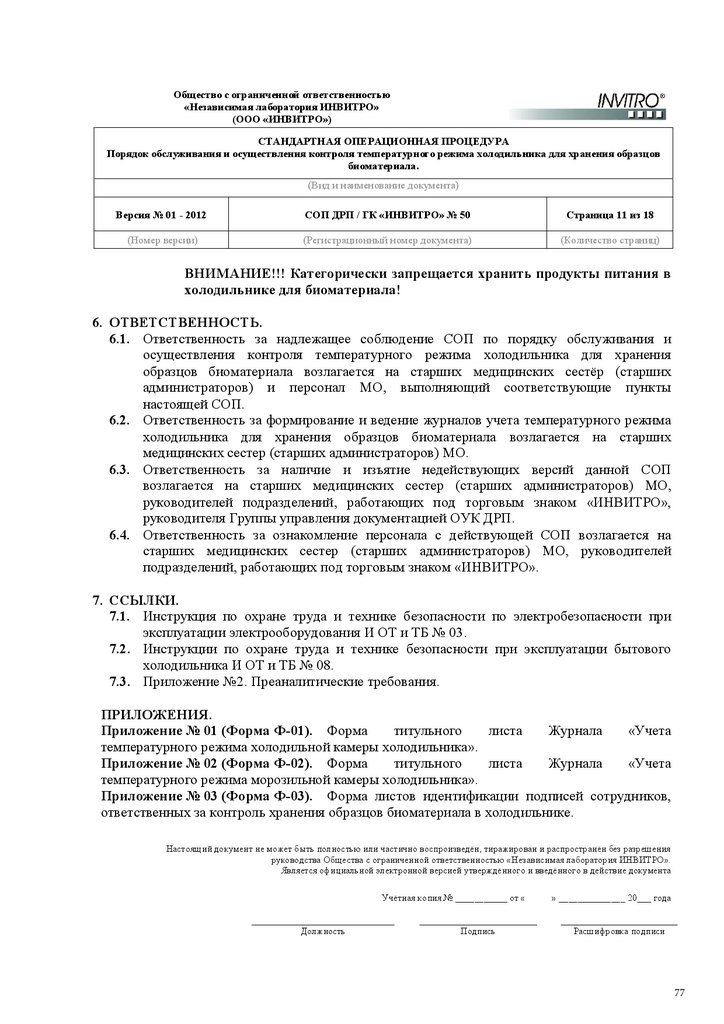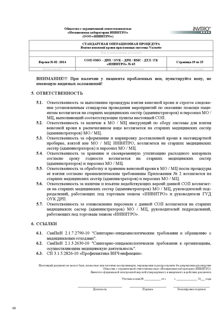 6.3. Ответственность за наличие и изъятие недействующих версий данной СОП