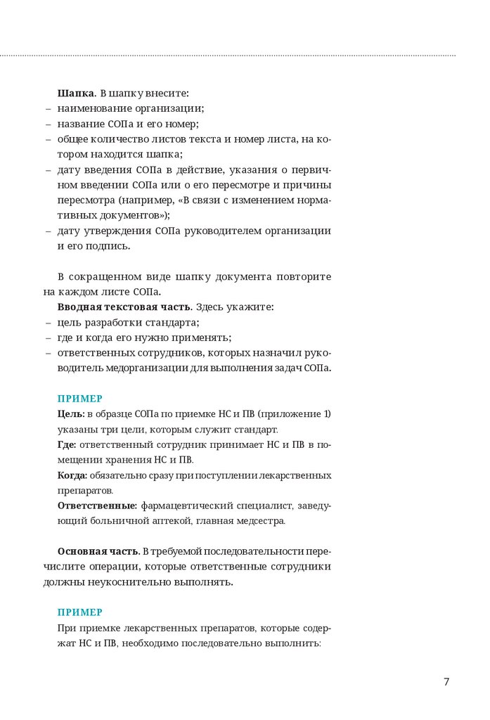 Помимо алгоритма действий, СОП содержит шапку, информацию