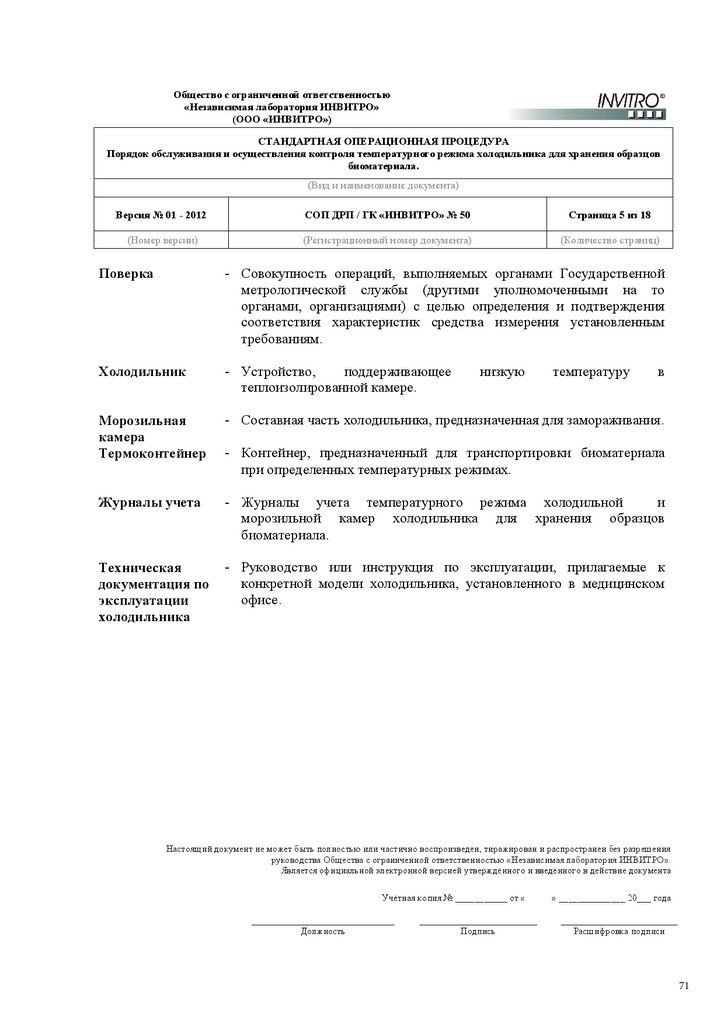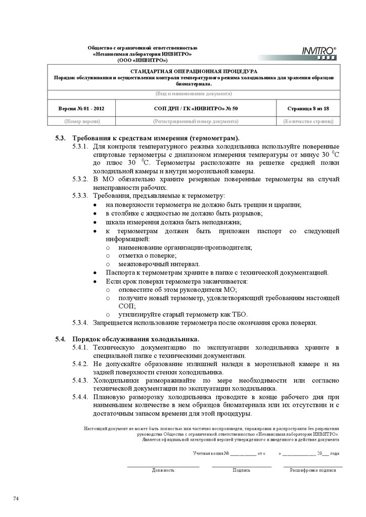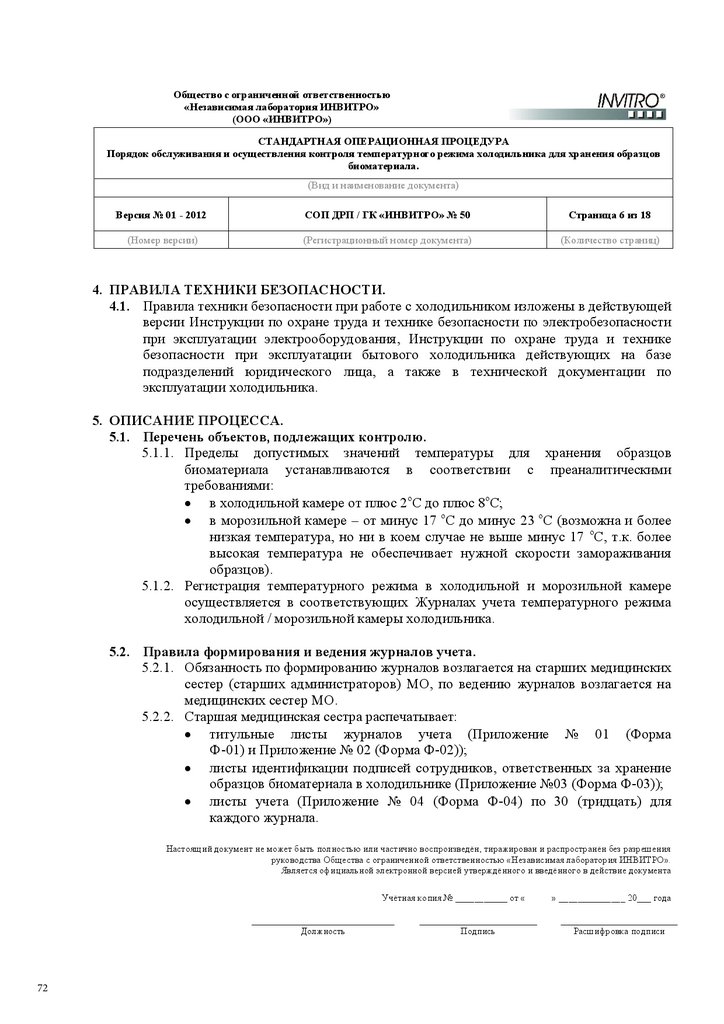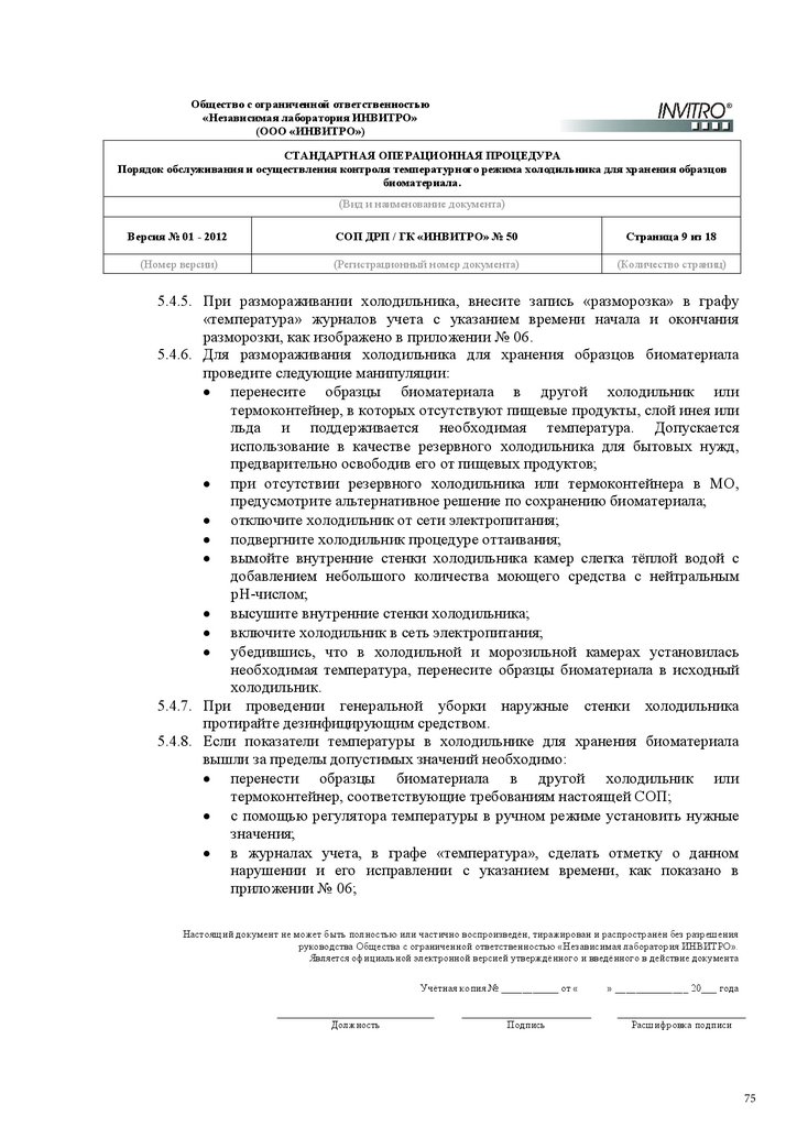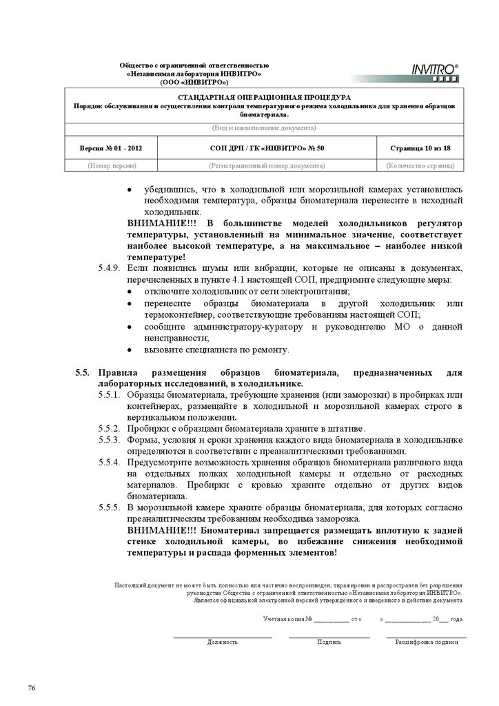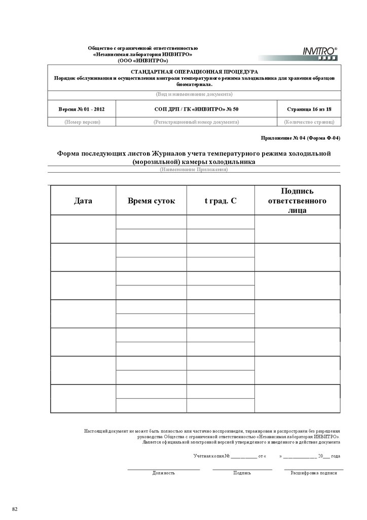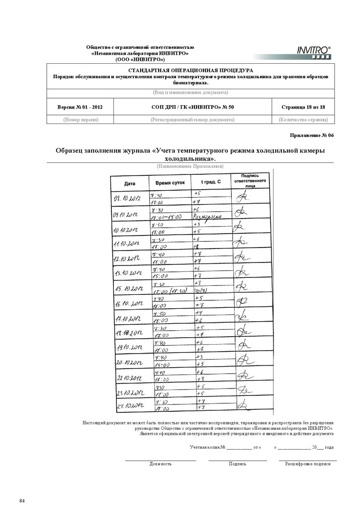 ответственных за контроль хранения образцов биоматериала в холодильнике.