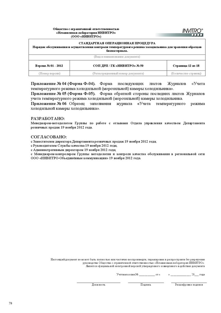 6.4. Ответственность за ознакомление персонала с действующей СОП возлагается на