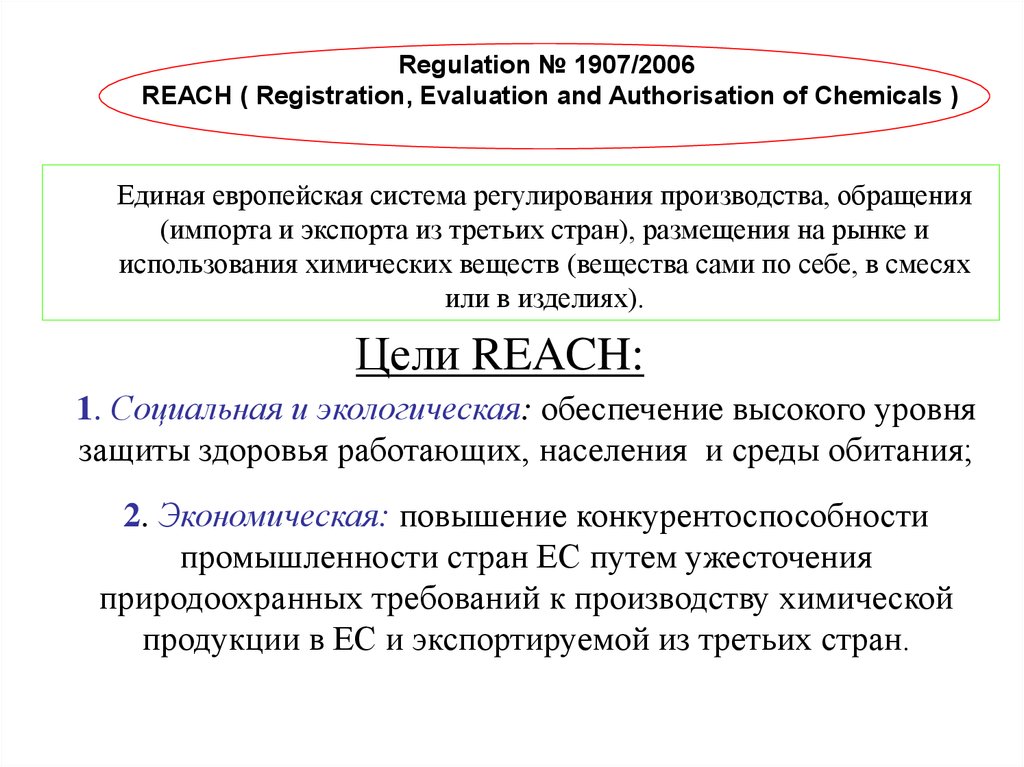 Regulation № 1907/2006REACH ( Registration, Evaluation and Authorisation of Chemicals )
