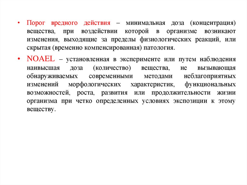 • NOAEL – установленная в эксперименте или путем наблюдения