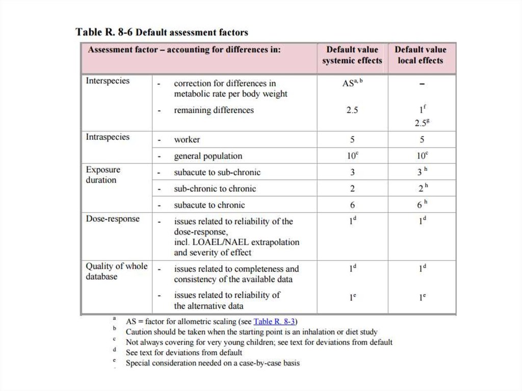 субпопуляции), разделив реальный уровень экспозиции на DNEL .