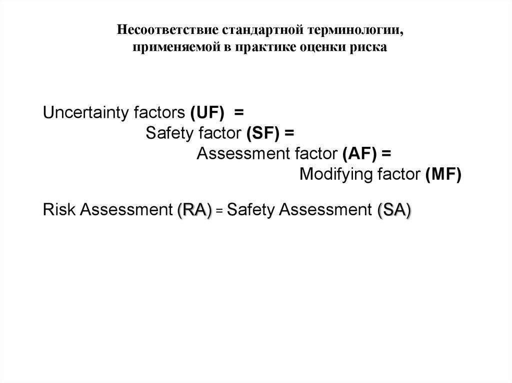 Несоответствие стандартной терминологии,применяемой в практике оценки риска