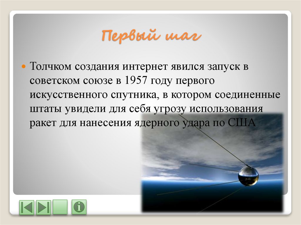 Толчком создания интернет явился запуск всоветском союзе в 1957 году первого