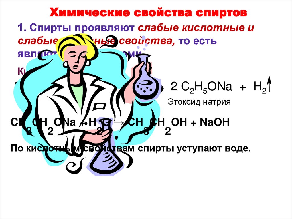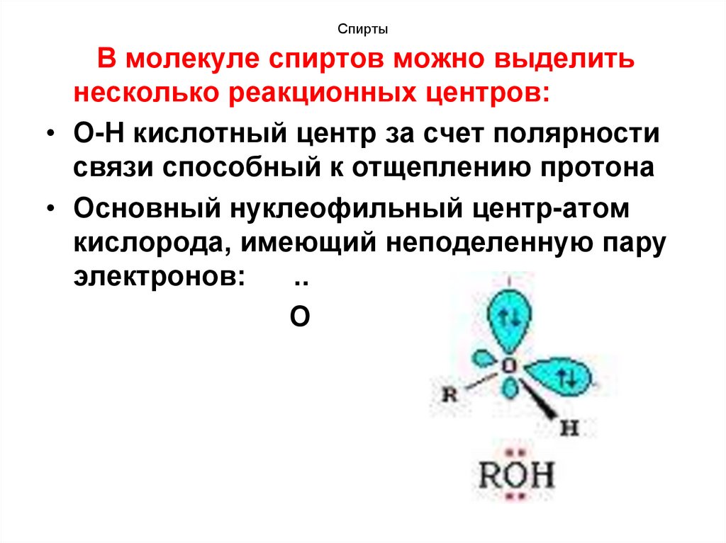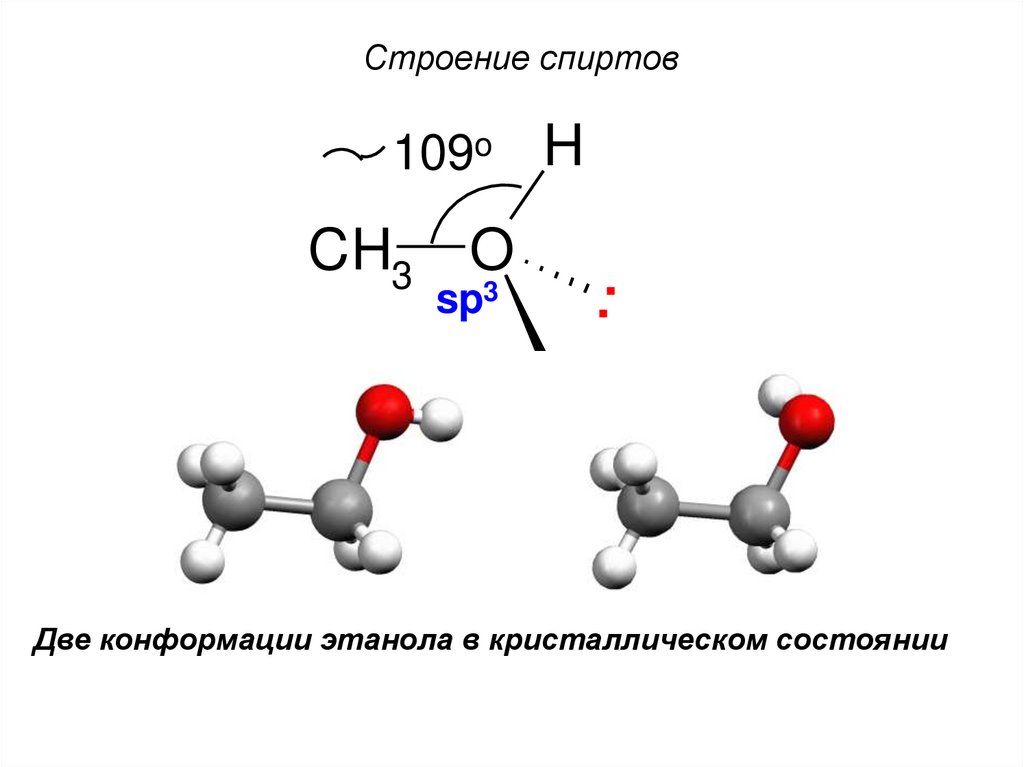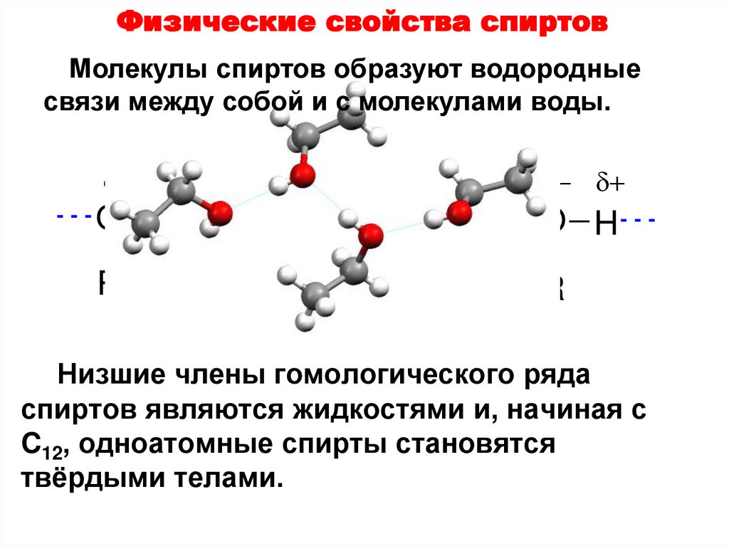 Молекулы спиртов образуют водородныесвязи между собой и с молекулами воды.