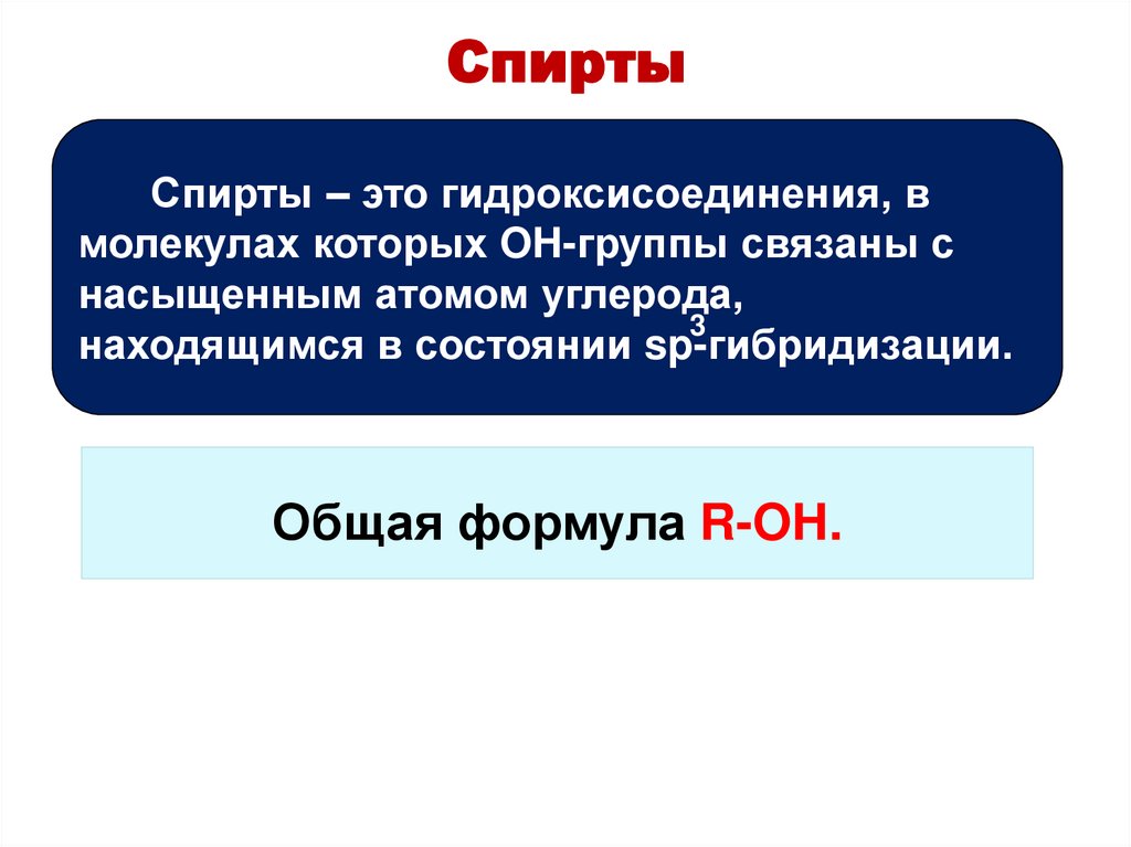 Спирты – это гидроксисоединения, вмолекулах которых OH-группы связаны с