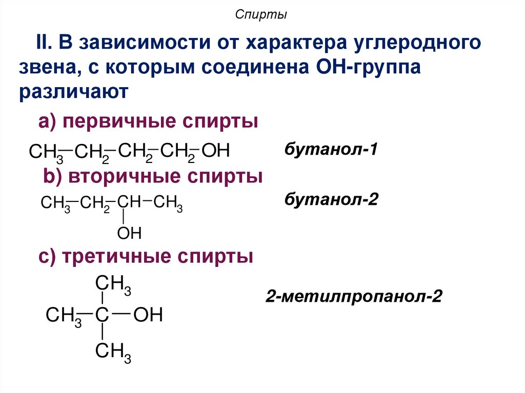 II. В зависимости от характера углеродногозвена, с которым соединена OH-группа