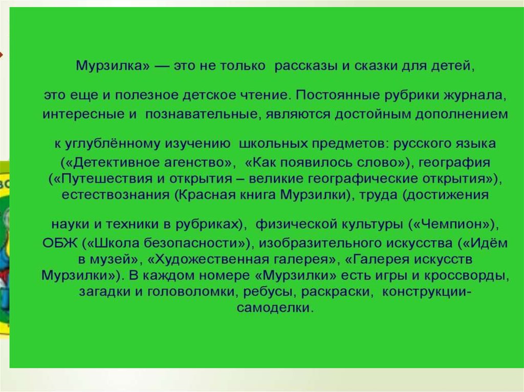 11. На сайте журнала можно почитать выпуски журнала, поучаствовать в конкурсах, разгадать кроссворды, есть и раскраски, игры, мультфильмы и мас