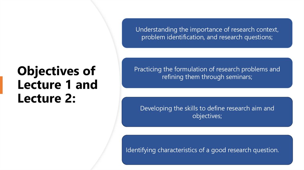 1. Lecture 1: Introduction to Research Context, Problem and Research Question Lecture 2: Defining Research Aim and Objectives