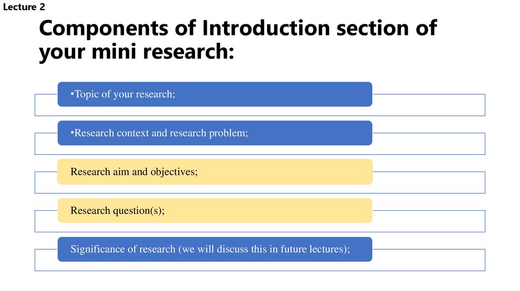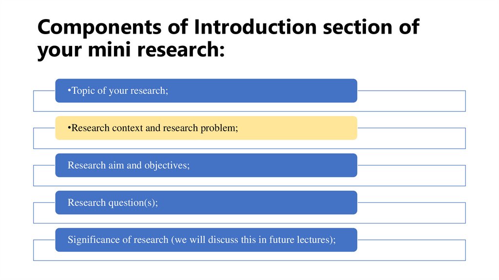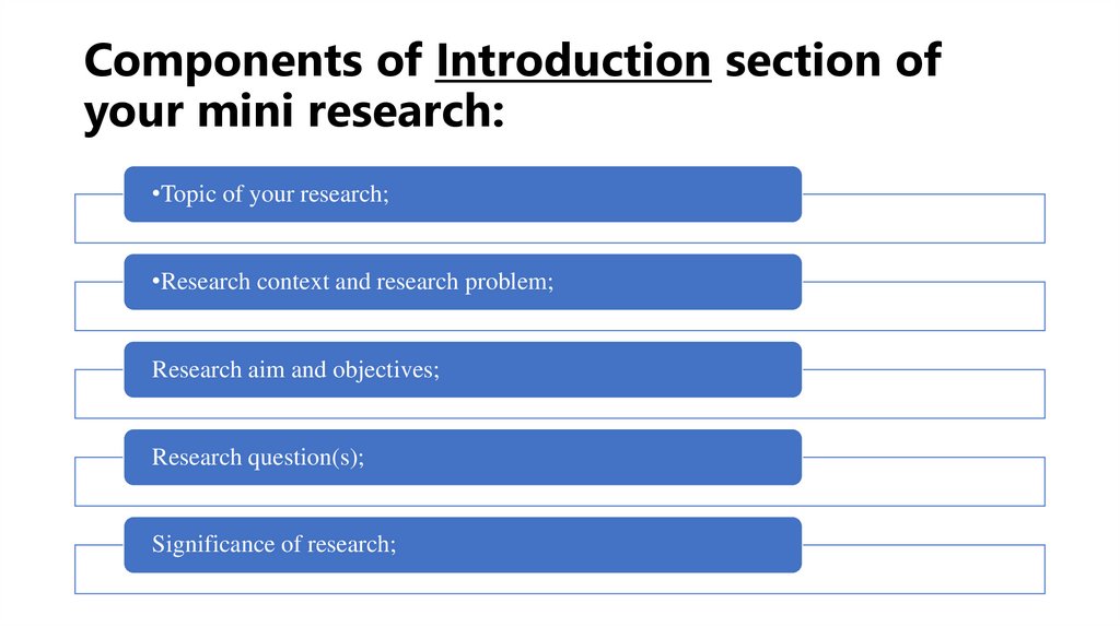 4. Components of Introduction section of your mini research: