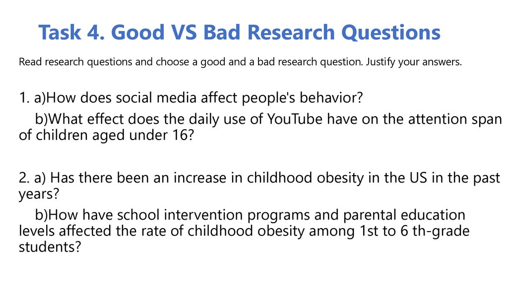 27. Task 4. Good VS Bad Research Questions