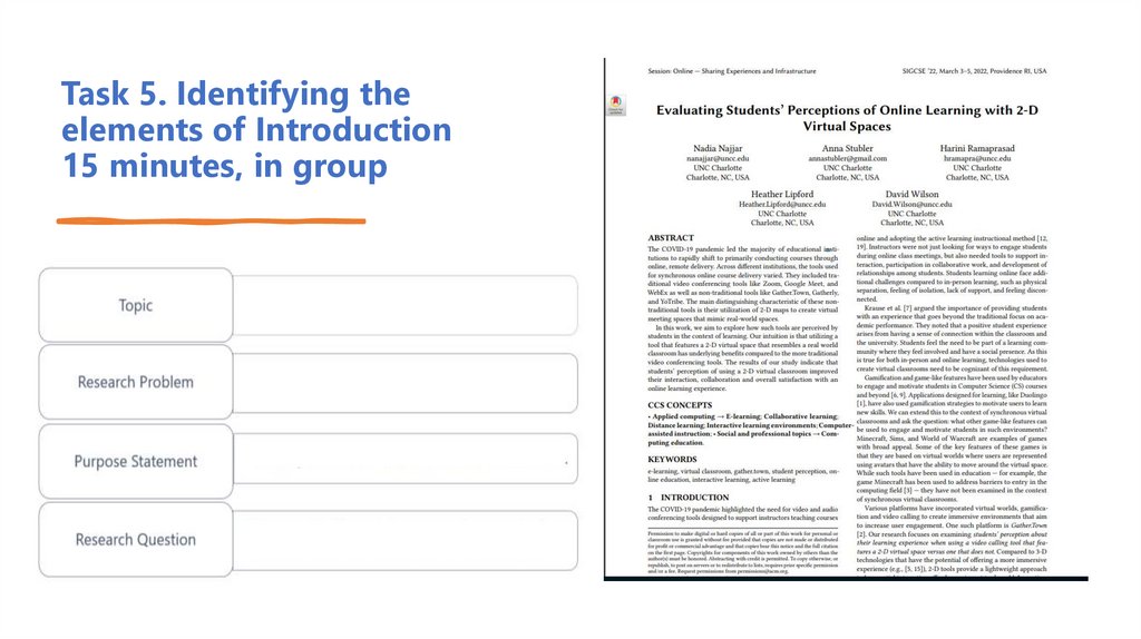 28. Task 5. Identifying the elements of Introduction 15 minutes, in group