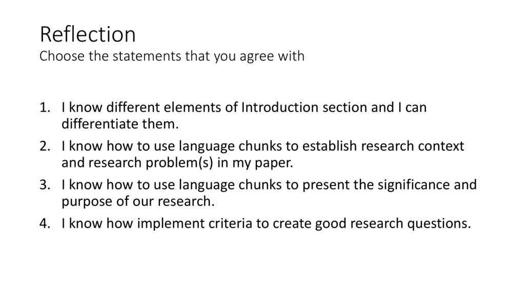 1. I know different elements of Introduction section and I candifferentiate them.