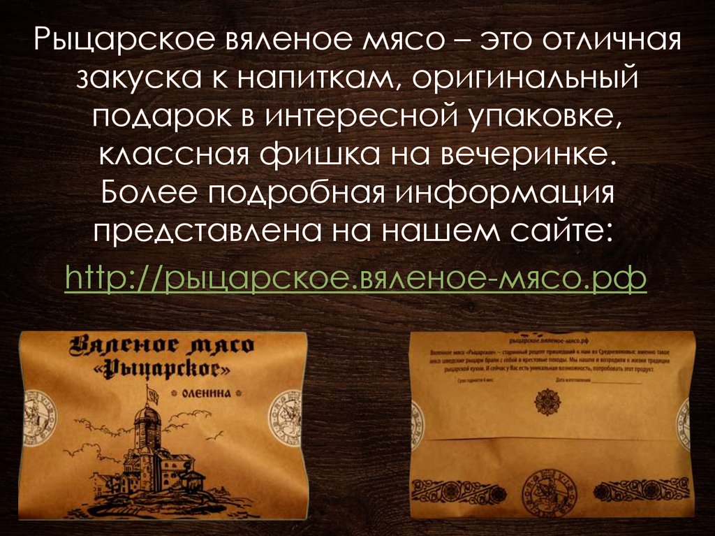 Рыцарское вяленое мясо – это отличнаязакуска к напиткам, оригинальный