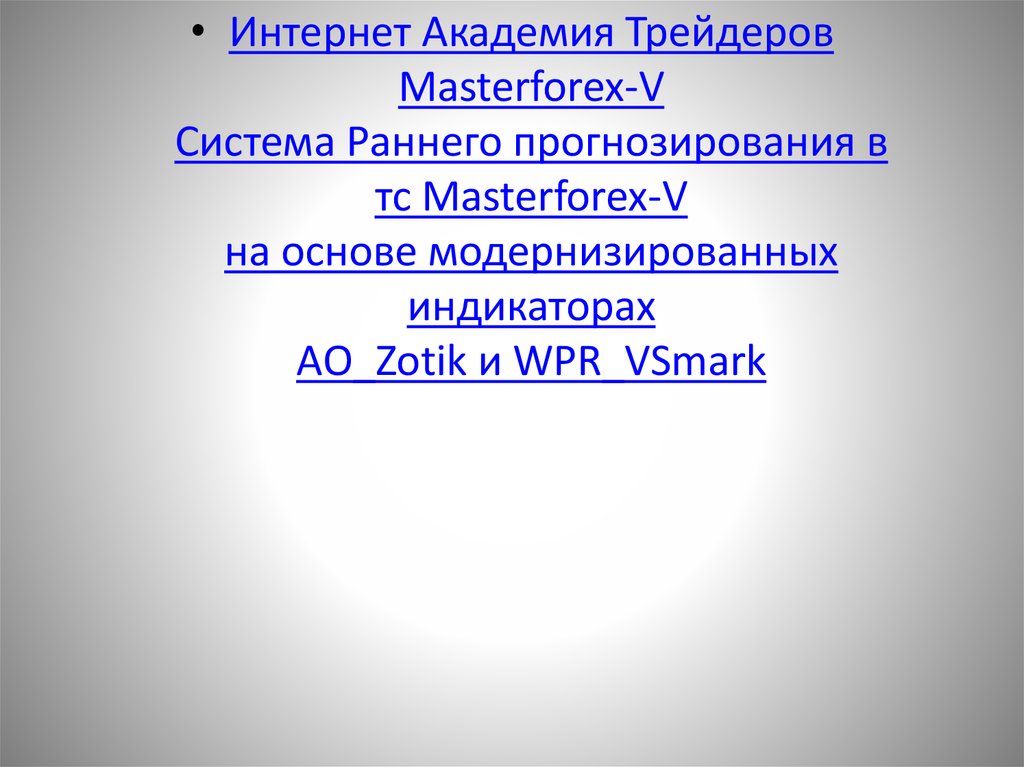 Система Раннего Прогнозированияна основе ТС Masterforex-V