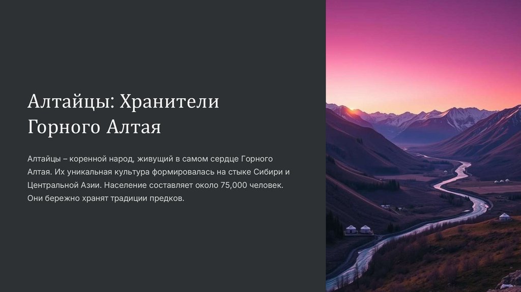 Алтая. Их уникальная культура формировалась на стыке Сибири и